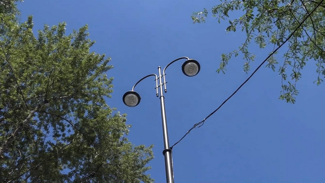 Далее побывали в сквере имени Т. Турсунбаевой. В зоне отдыха муниципальное предприятие «Бишкексвет» установило фонари в пушкинском стиле. Внешне они выглядят совсем как в прошлом веке, а вот начинка у них уже современная и энергосберегающая. Эти светильники — светодиодные, они будут освещать сквер по всем стандартам и, в то же время, экономить электроэнергию.
