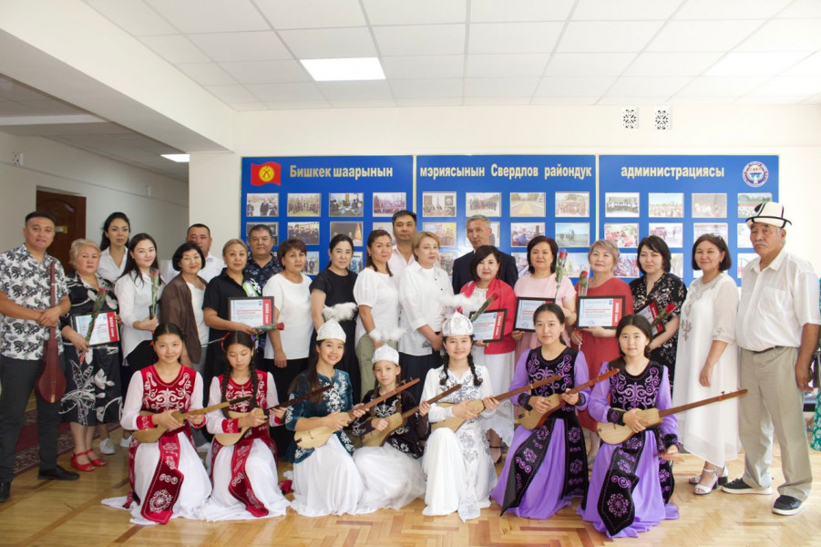 В Первомайском районе праздничное мероприятие прошло в Бишкекском хореографическом училище им. Ч. Базарбаева с концертной программой и вручением памятных подарков.