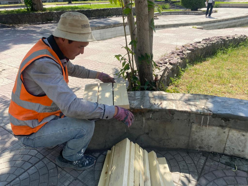 Муниципальное предприятие «Тазалык» активно продолжает работы по обновлению скамеек и урн в зонах отдыха столицы.