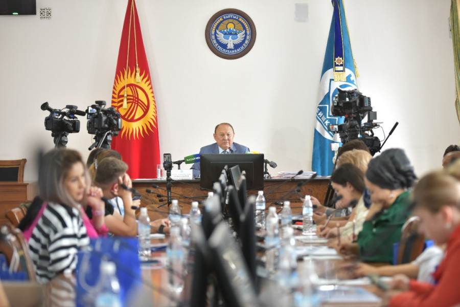 В зале заседаний мэрии столицы проходит пресс-конференция мэра столицы Эмилбека Абдыкадырова, посвященная итогам работы за 100 дней.