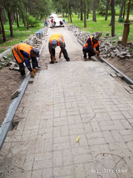 В парке имени Кемаля Ататюрка производится ремонт тротуаров внутри парка.
