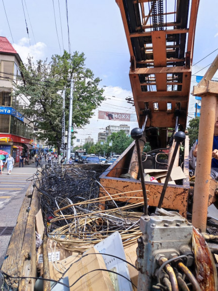 Во время обхода обрезано порядка 200 метров кабеля по улице Абдрахманова от проспекта Жибек Жолу до улицы Льва Толстого и по Байтик Баатыра от Л. Толстого до Ахунбаева. В основном провода относятся к интернет-провайдерам.