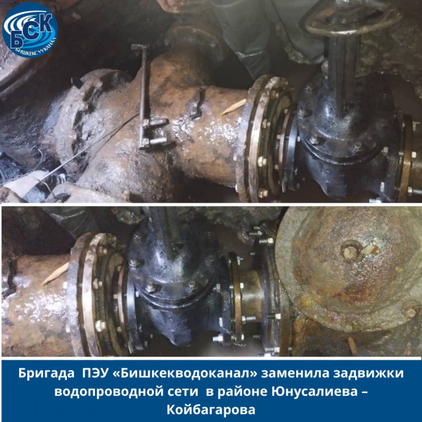 Ремонт проводился силами специалистов службы водоснабжения ПЭУ «Бишкекводоканал». Одна задвижка была заменена, вторая реставрирована.