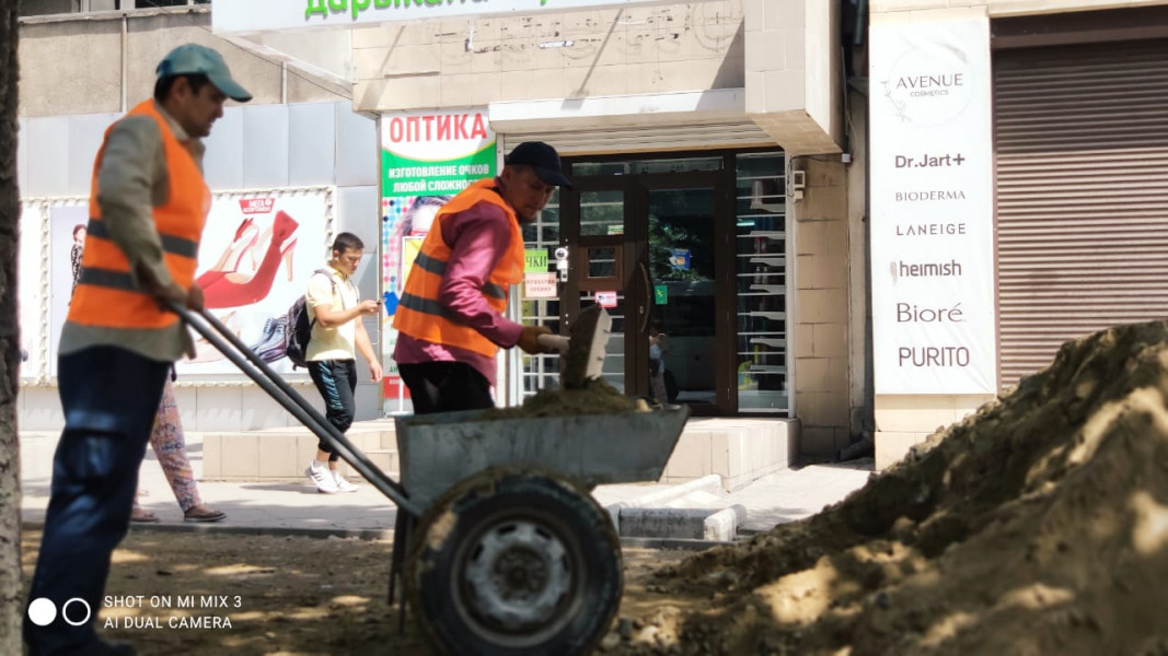 За счет республиканского бюджета проходит капитальный ремонт тротуаров на Старой площади.