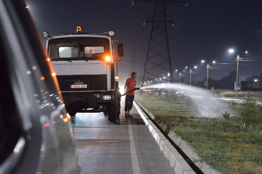 В автополиве задействована спецтехника МП «Тазалык» и «Бишкекзеленхоз». Всего более 20 единиц спецтехники.