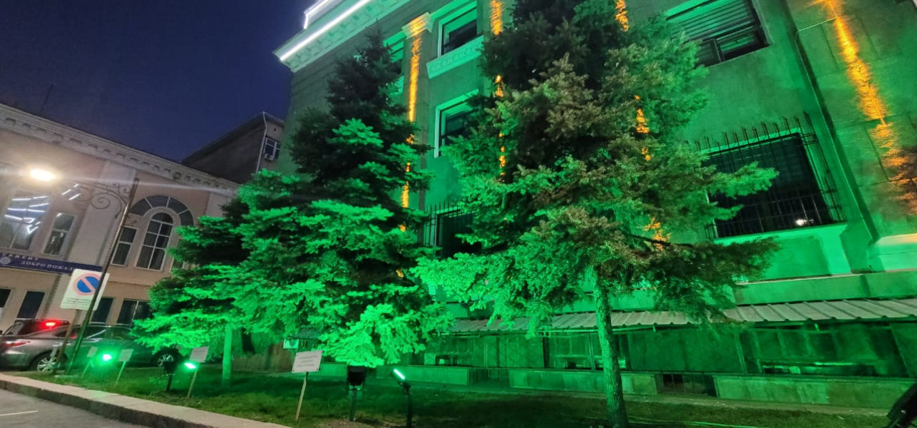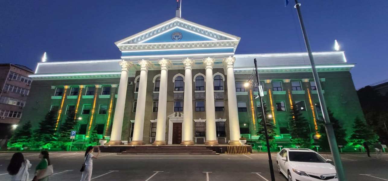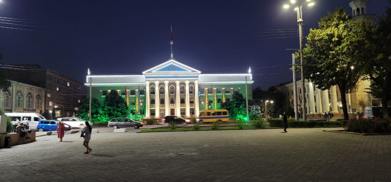 Муниципальное предприятие «Бишкексвет» обновило подсветку здания мэрии г. Бишкек.