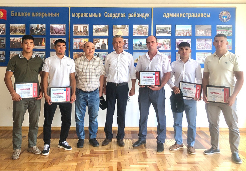Денежные сертификаты получили воспитанники и тренеры столичных спортивных клубов и СДЮСШОР имени Р. Санатбаева Свердловского района города Бишкек: