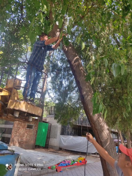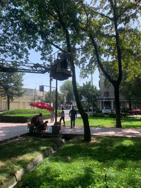 Для безопасности горожан и улучшения внешнего облика столицы продолжается тотальная обрезка проводов.