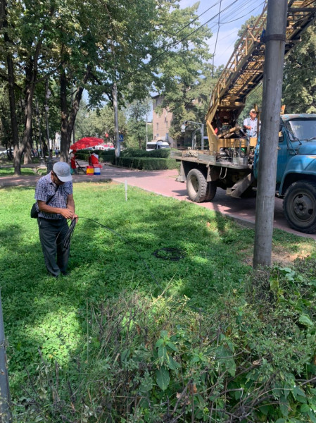 По поручению руководства Первомайского района сотрудники акимиата совместно с муниципальным предприятием «Бишкексвет» регулярно проводят инспекцию по незаконно проведённым проводам.
