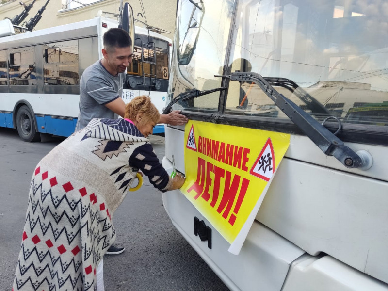 На троллейбусах прикреплены таблички с надписью «Внимание! Дети!». Кроме того, водителей проинформировали о начале учебного года.