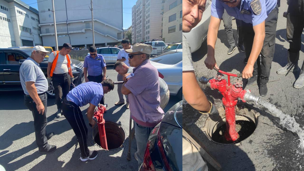 Накануне сотрудники Октябрьской администрации совместно с сотрудниками отдела Министерства чрезвычайных ситуаций, производственно-эксплуатационного управления «Бишкекводоканал» проверили готовность пожарных гидрантов в рамках учения противопожарной безопасности рынка «Орто-Сай».