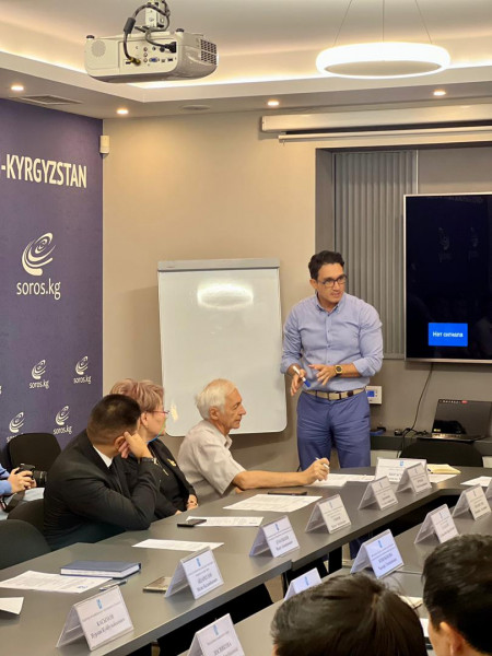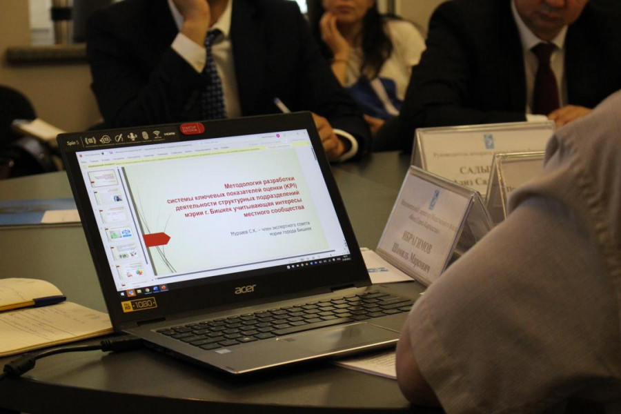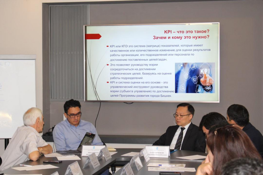 В ходе обучающего семинара члены рабочей группы ознакомились с презентацией члена экспертного совета мэрии города Бишкек Салиха Мурзаева о выработке ключевых показателей эффективности управления.