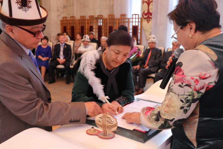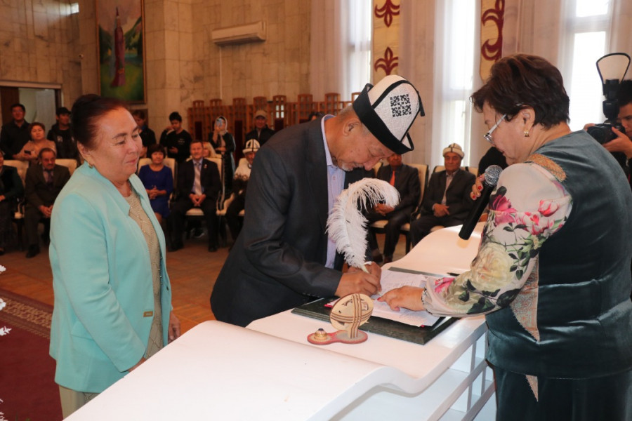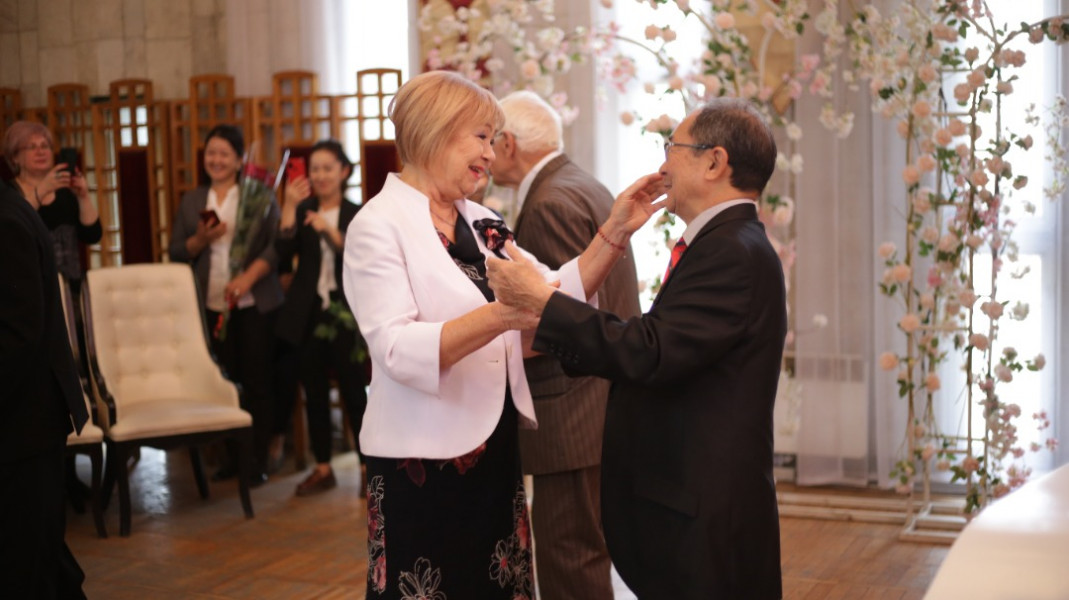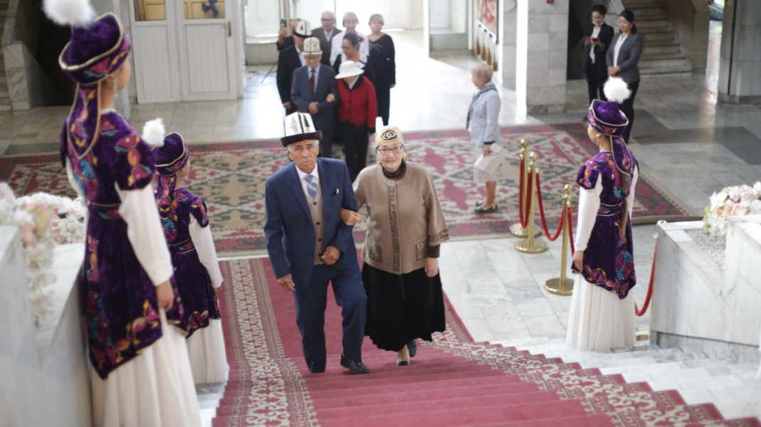 В честь празднования Международного дня пожилых людей, во Дворце бракосочетания столицы свой юбилей отметили бриллиантовые, изумрудные и золотые семейные пары