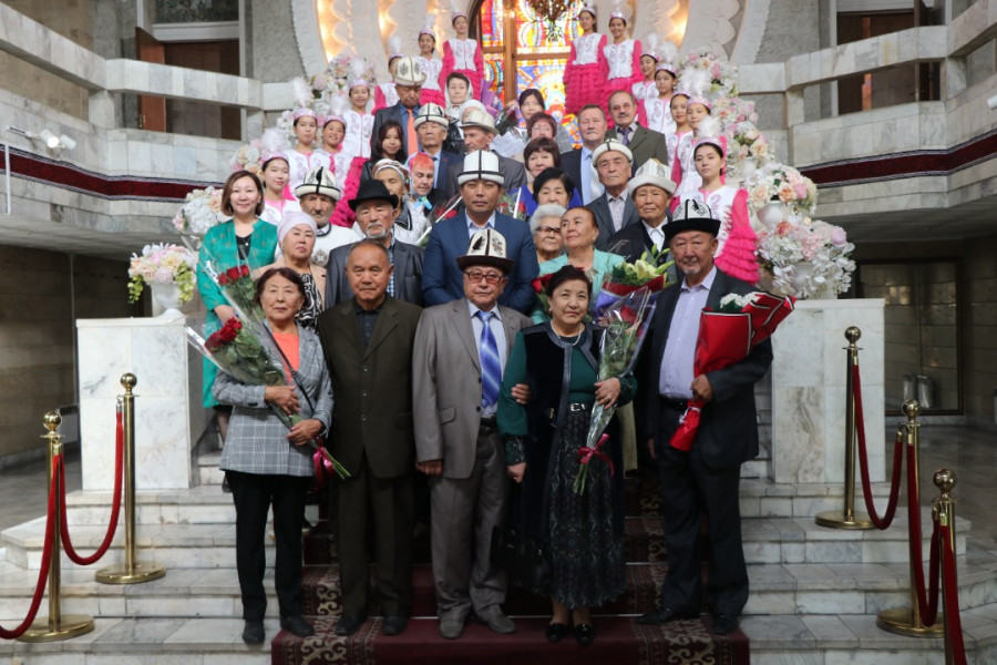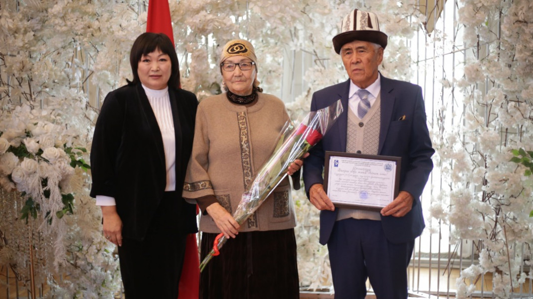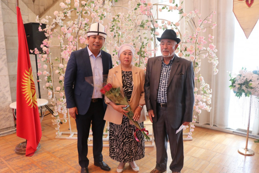 В Первомайском районе во Дворце бракосочетания под свадебный марш Мендельсона семейные пары расписались в Почётной книге юбиляров. Праздничную обстановку создавали студенты Бишкекского хореографического училища имени Ч. Базарбаева, которые выступили с трогательным вальсом и национальным танцем, а также сами юбиляры станцевали свадебный вальс. В завершение мероприятия в небо запустили белых голубей, как знак верности и любви. Также сотрудники акимиата посетили долгожителей на дому и вручили ценные подарки и по 5 тысяч сомов.