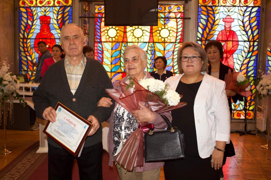 Аким Ленинского района также поздравил бриллиантовые и золотые пары района и вручил ценные подарки. Супруги расписались в Почетной книге юбиляров.