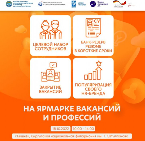 Ярмарка вакансий и профессий пройдет 18 октября 2022 г. в Кыргызской национальной филармонии имени Т.Сатылганова.