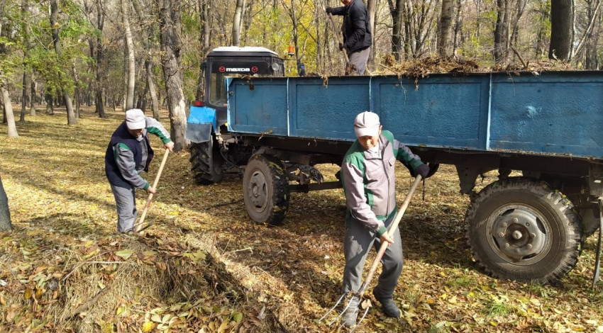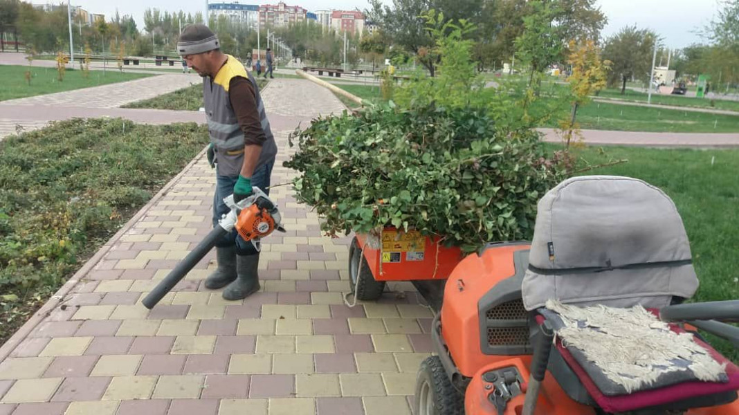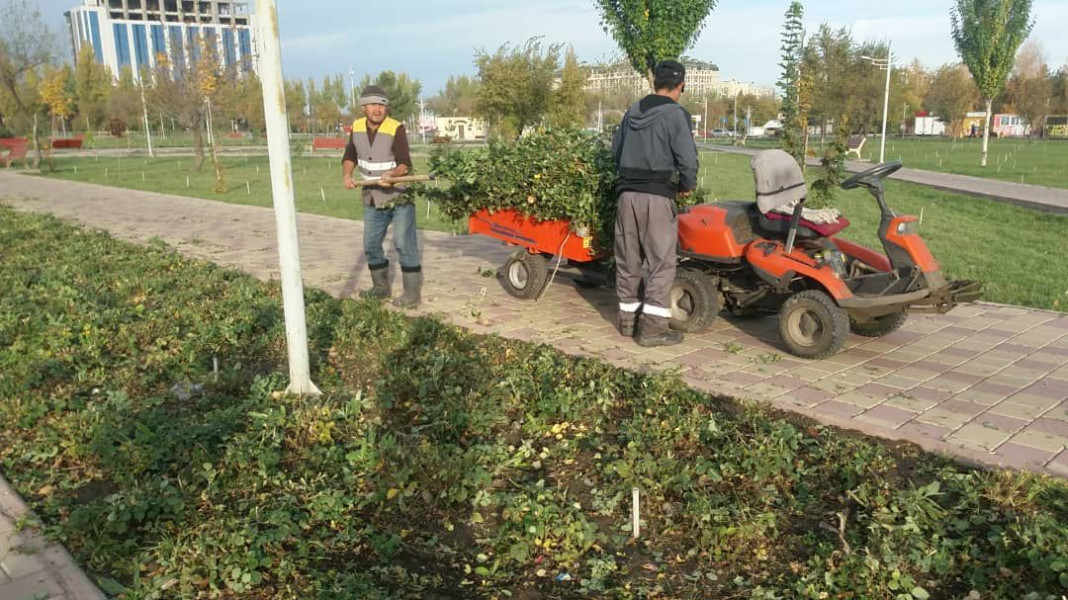 На сегодняшний день в парках «Ата-Тюрк», им. Ю. Фучика, Карагачевая роща, в парке им. Ч.Тулебердиева и Боталиева и д.р уже проведены такие работы как подметание аллей и тратуаров, площадью 80 000 м2, очищено от мусора более 400 урн, очищены территории парка от опавших листьев, поднятие крон хвойных деревьев, формирование кустарниковых, обрезка роз перед закрытием.