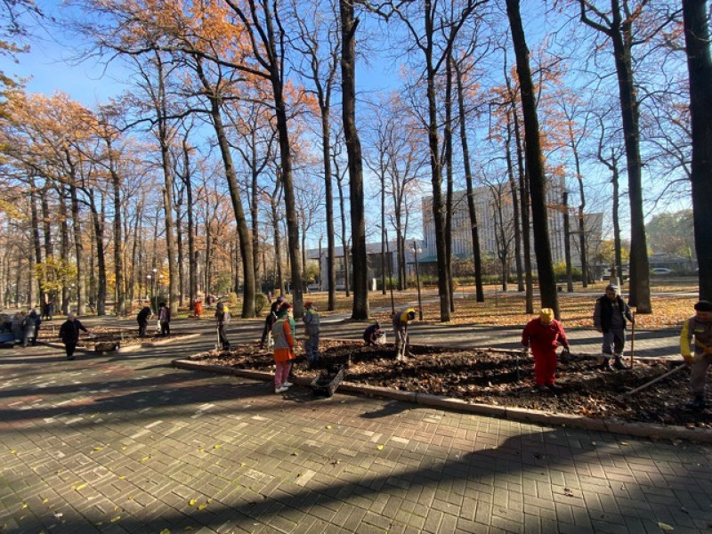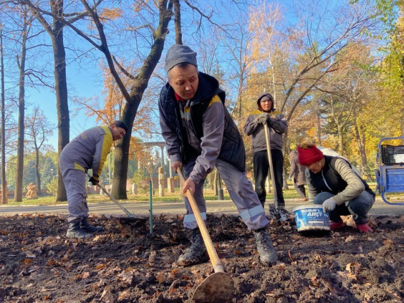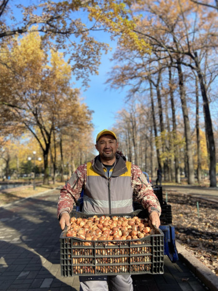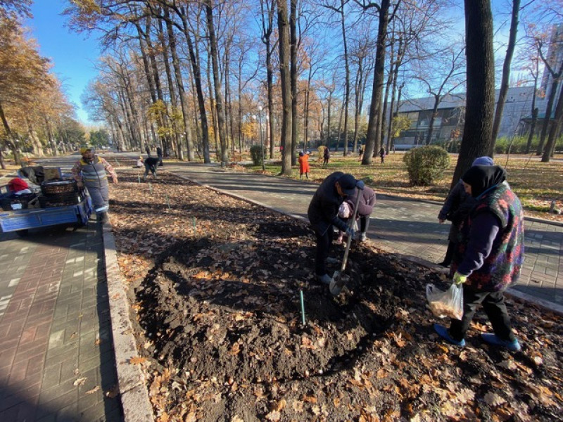 На столичных клумбах началась посадка луковиц тюльпанов.