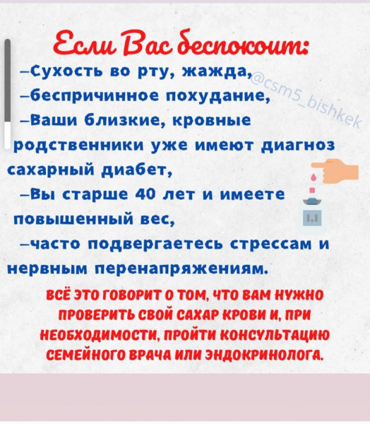 Напомним, что в ЦСМ района ведут работу врачи-эндокринологи, которые занимаются диагностикой и лечением сахарного диабета. Попасть к этим специалистам можно по направлению семейного врача и по предварительной записи.