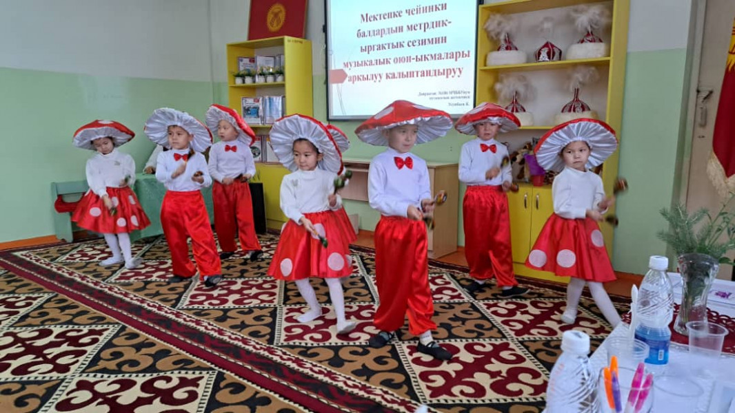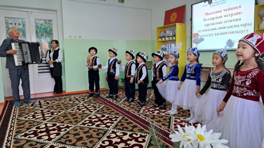 Дети выступили с танцем, который сопровождался ритмическими движениями деревянных ложек под русскую народную песню. Презентацию на эту тему подготовил опытный музыкальный руководитель Усупбаев Кыдыкбек.