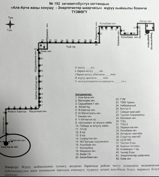По результатам обсуждений решено частично изменить схему движения микроавтобусного маршрута №152 ОсОО «Юрам». Теперь маршрут буде следовать по улице Шералиева до улицы Семетей, без заезда на улицу 18. Далее маршрут проследует по той же схеме движения.