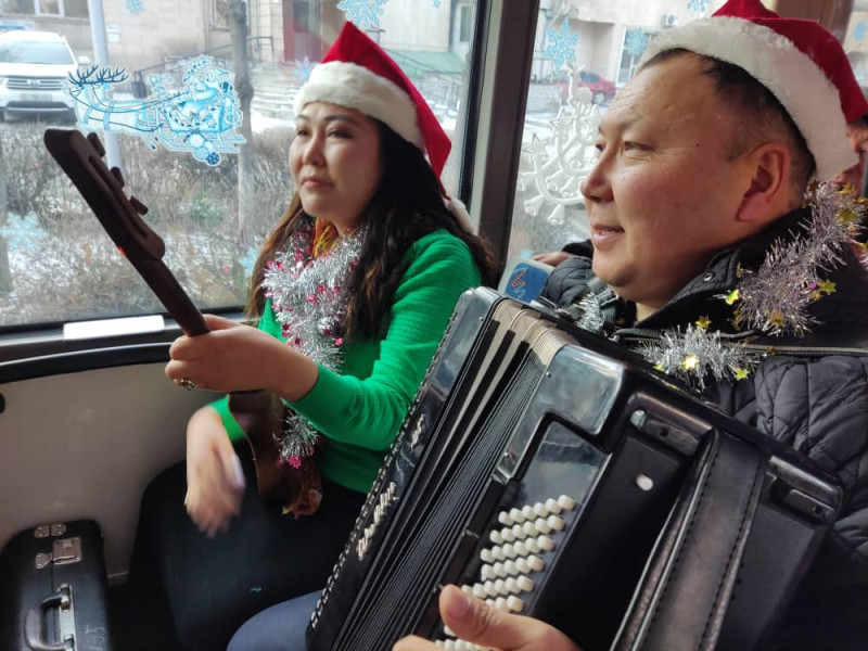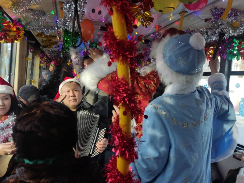 Бишкекское троллейбусное управление совместно с Ленинским акимиатом столицы организовали небольшой новогодний концерт для пассажиров.