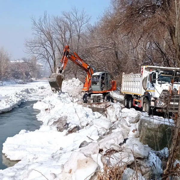Для ликвидации затора задействовали 5 единиц спецтехники министерства сельского хозяйства КР, 1 экскаватор МП «Бишкекводхоз».