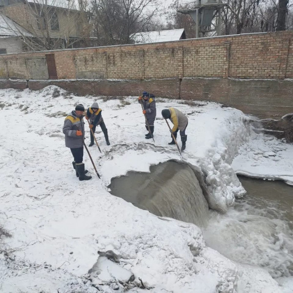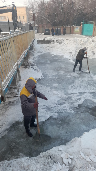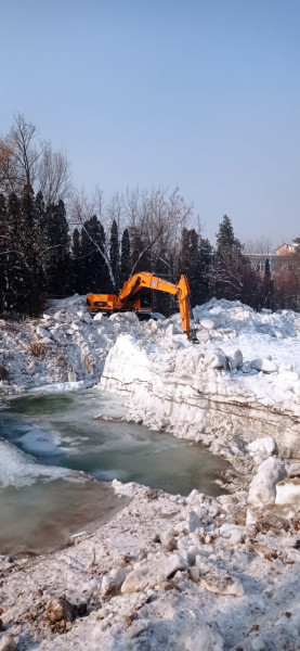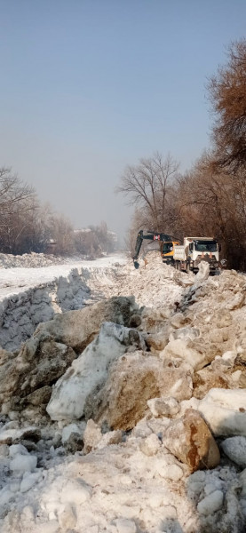 Сотрудники городских служб все ещё устраняют ледяной затор на реке Ала-Арча.
