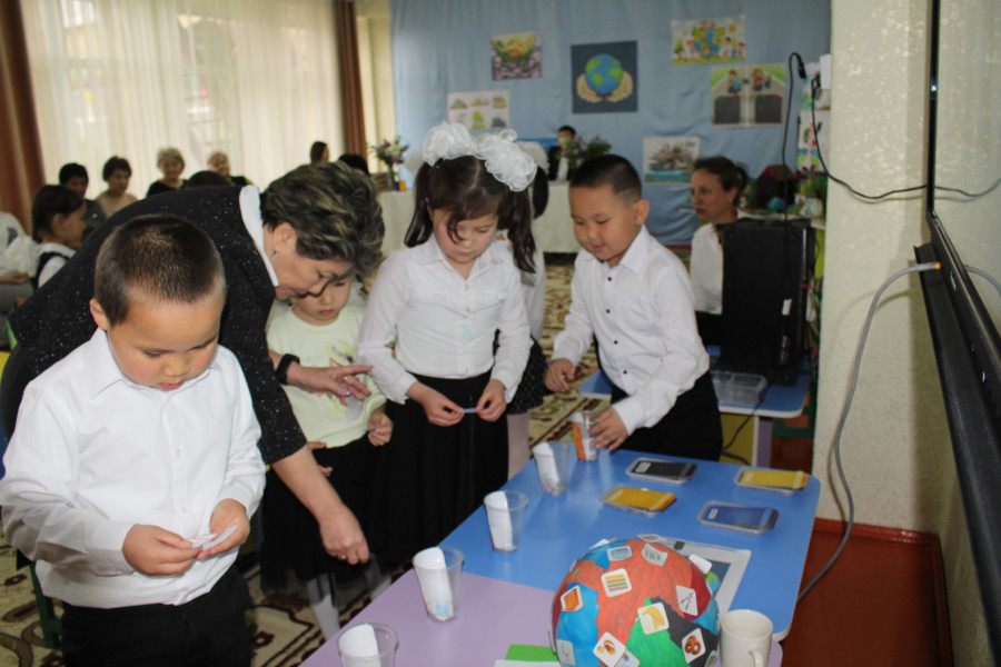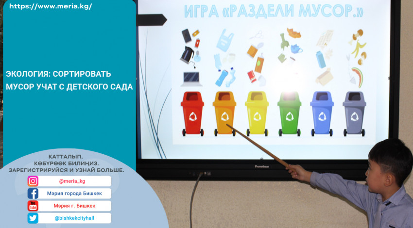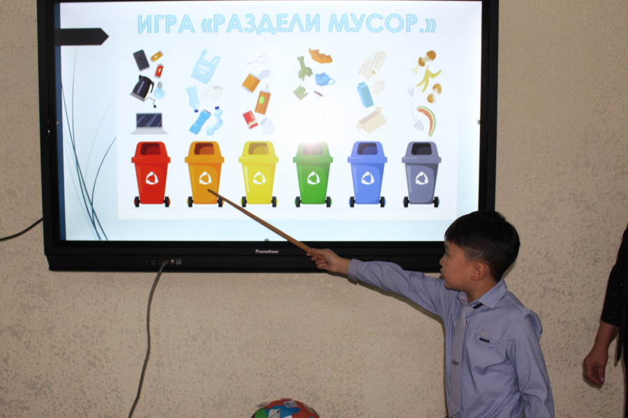 На уроке глава Свердловского района Максатбек Саргазаков отметил, что эти занятия позволяют дошколятам учиться, с юного возраста различать бытовые и твердые отходы.