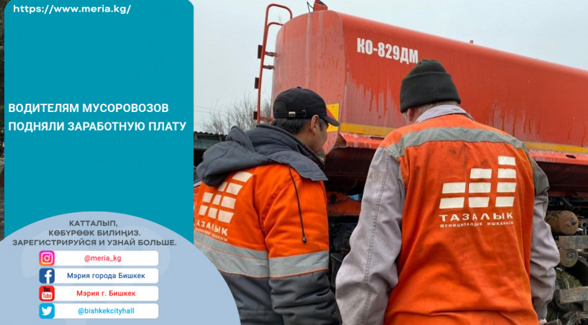 Теперь некоторые водители мусоровозов получают заработную плату свыше 80 тыс.сом в месяц, до повышения водители получали на руки около 30-35 тысяч сомов.
