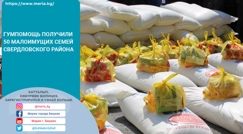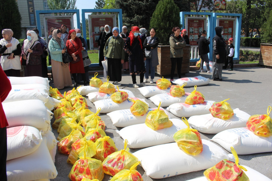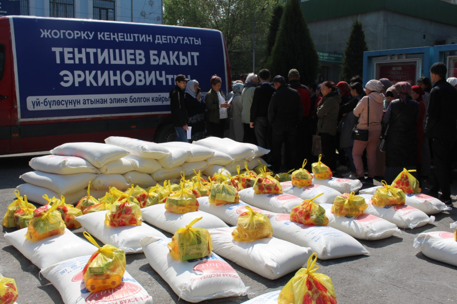 Сегодня, 20 апреля в рамках приближающегося праздника Орозо Айт по инициативе депутата Жогорку Кенеша Бакыта Тентишева 50 малоимущим семьям Свердловского района вручены продуктовые наборы.