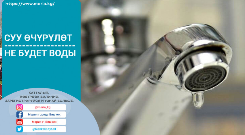 Как сообщают в производственно-эксплуатационном управлении «Бишкекводоканал», 2 мая с 10:00 часов до 23:00 часов будет прекращена подача питьевой воды в жилые дома, школы, детские дошкольные учреждения, объекты здравоохранения и другие объекты социально-бытового назначения и промышленности.