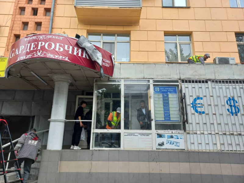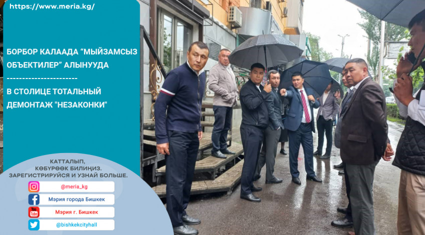 На месте работали сотрудники Управления по контролю за землепользованием совместно с сотрудниками ГУ "Бишкекглавархитектура" и муниципального предприятия "Тазалык".