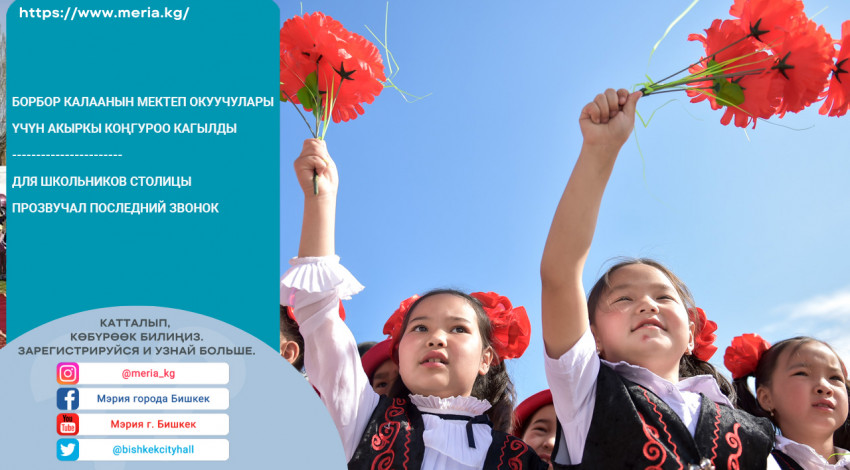 Последний школьный звонок в Бишкеке прозвенел для 15 тысяч 688 учащихся девятых классов и 8 тысяч 111 школьников одиннадцатого класса.