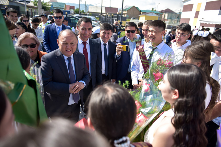 Мэр столицы Эмилбек Абдыкадыров принял участие в торжественной линейке, посвященной последнему звонку в школе №100 жилого массива «Рухий-Мурас».