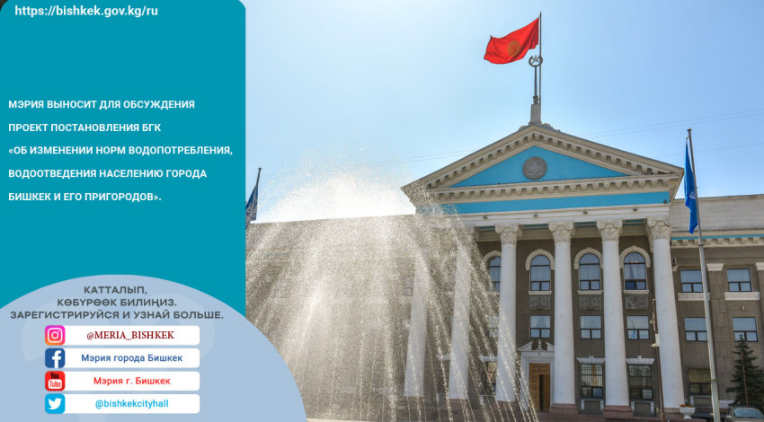 Мэрия города Бишкек выносит на сайт для всеобщего обсуждения проект постановления Бишкекского городского кенеша «Об изменении норм водопотребления, водоотведения населению города Бишкек и его пригородов».