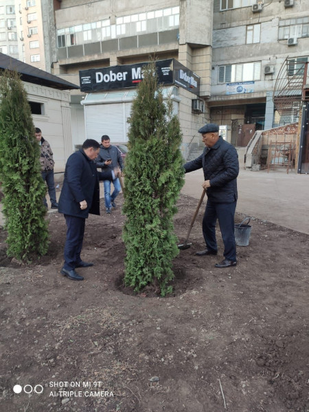 По инициативе акима Первомайского района Мурата Осмонова МП «Бишкекзеленхоз» провело первые посадки зелёных насаждений в новом сквере.