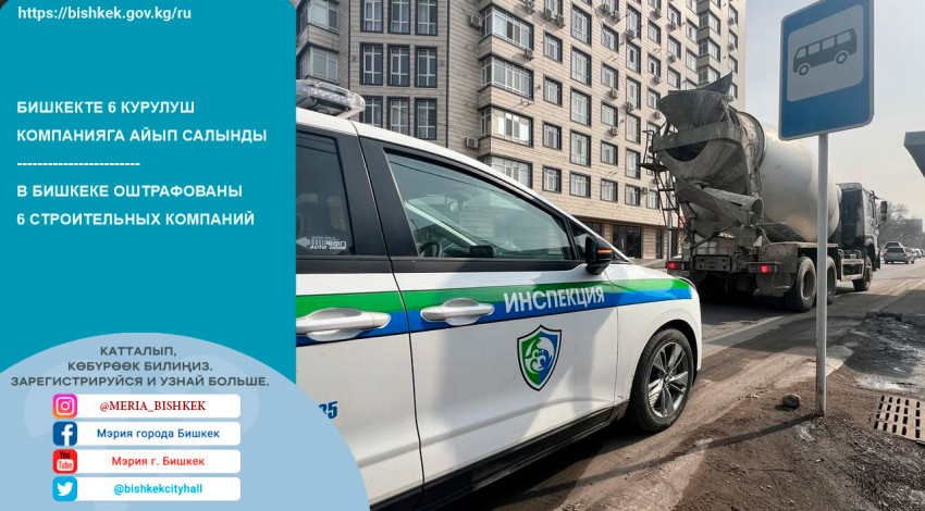 Муниципальной инспекцией выявлены нарушения со стороны 6 строительных компаний, в отношении которых составлены протоколы и выписаны штрафы по Кодексу КР о правонарушениях.