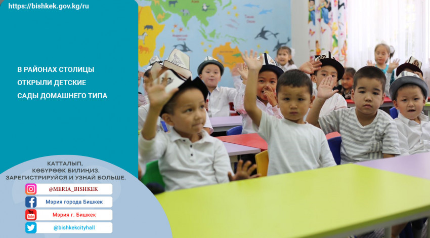 Мэрия города Бишкек сообщает, что каждый желающий может открыть детские сады домашнего типа, чтобы поддержать развитие дошкольного образования.