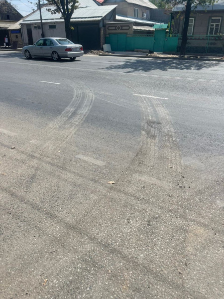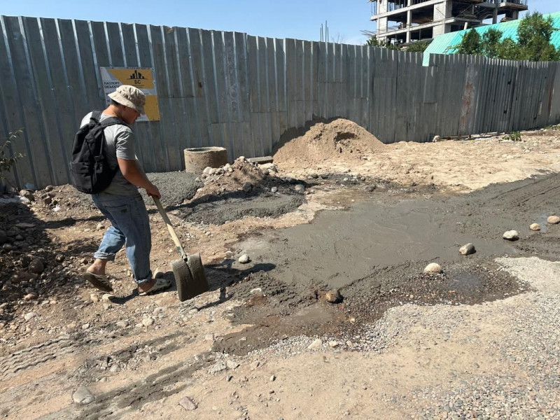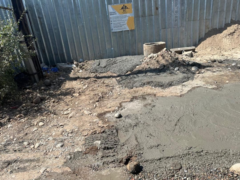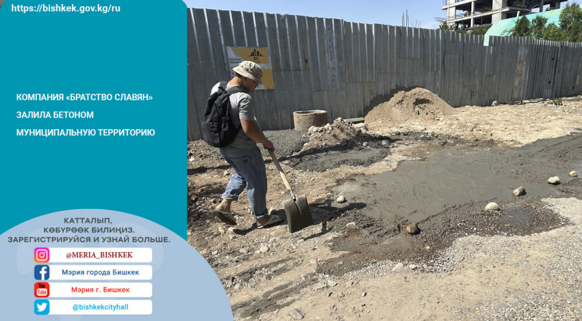 ОсОО «Братство Славян» залило бетоном муниципальную территорию и не приняло меры по предотвращению загрязнения проезжей части по улице Ахунбаева, 231, не промыв колеса спецтехники.