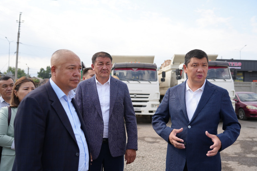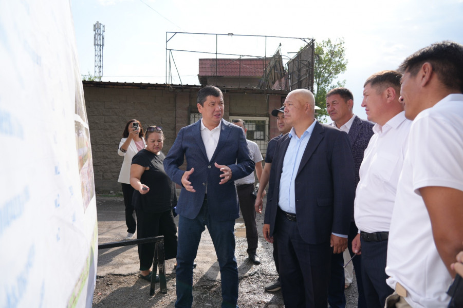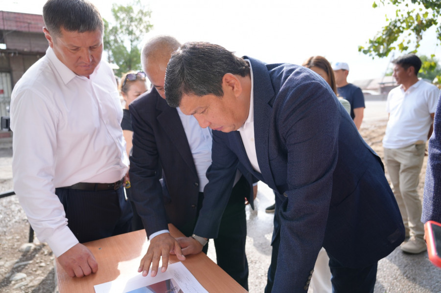 С ходом строительства на месте ознакомился мэр Бишкека Айбек Джунушалиев, аким Ленинского района Жыргалбек Шакиев и представители городских служб.