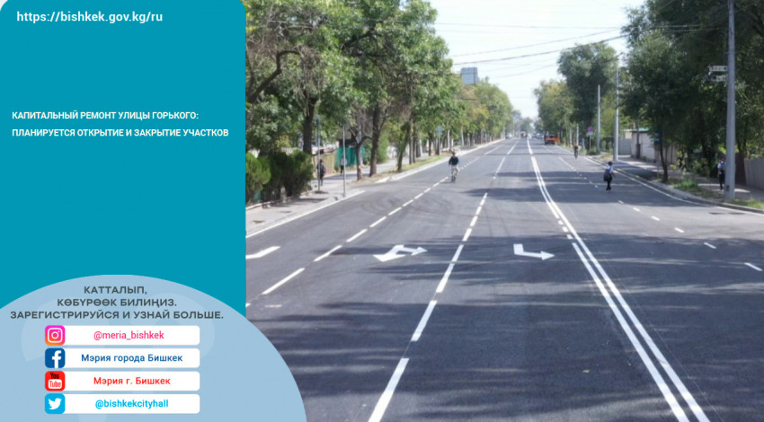 Кроме того, 16 сентября 2024 года, для движения транспорта отроют участок улицы Горького от улицы Ч.Айтматова до улицы Панфилова.