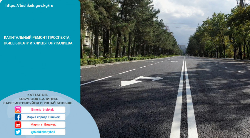 Кроме того, 17 сентября 2024 года, завершится капитальный ремонт улицы Юнусалиева, и дорога будет полностью открыта для движения транспорта. Однако работы по приведению в порядок тротуаров и ирригационной системы будут продолжены со стороны муниципальных предприятий «Бишкекасфальтсервис» и «Бишкекзеленстрой».