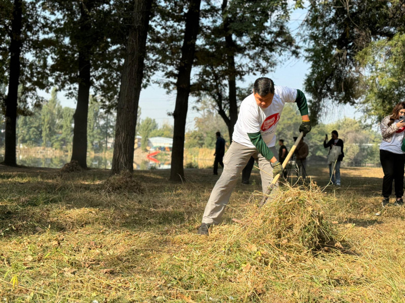 Так, сотрудники центрального аппарата мэрии города Бишкек с участием главы столицы Айбека Джунушалиева, главы ОФ «Эко Деми» Айжан Чыныбаевой, Свердловской районной администрации, начальников подразделений и сотрудников общественного фонда «Эко Деми» провели субботник в сквере на пересечении улиц Аул и Элебесова.