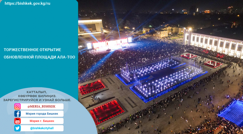 Отметим, площадь Ала-Тоо построена в 1984 году в честь 60-летия образования Кыргызской ССР. Символично, что спустя 40 лет реконструкция площади была приурочена к 100-летию образования Кара-Кыргызской автономной области.