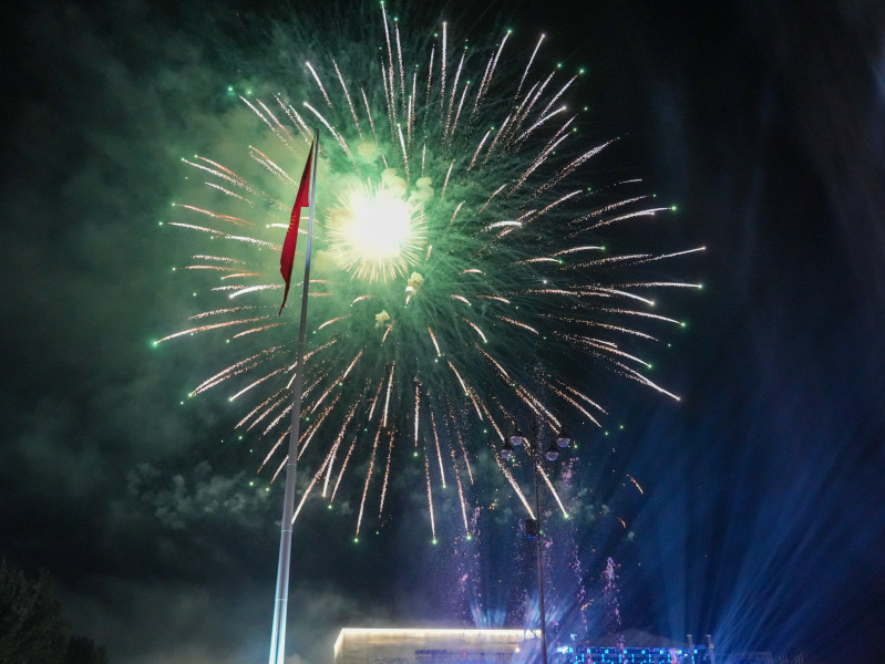 Глава столицы выступил с приветственной речью и дал старт запуску фонтанных групп, а также организовали эпичное фейерверк-шоу.