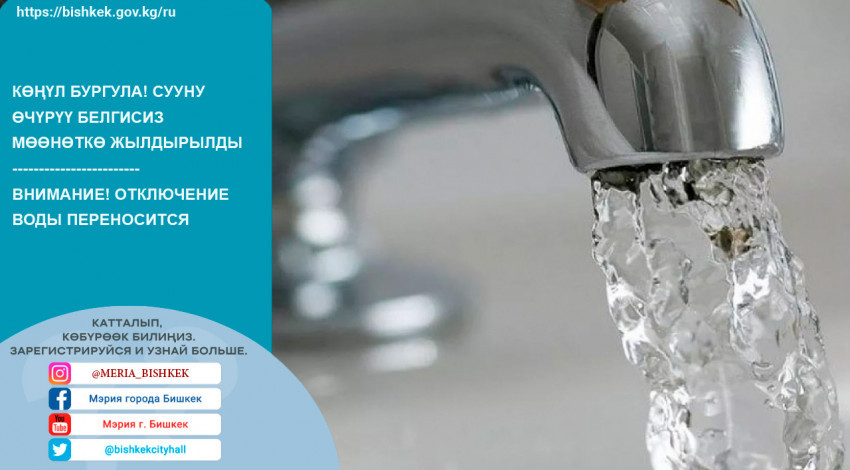 В городе Бишкек отключение питьевой воды, запланированное на 15 октября 2024 года переносится на неопределенный срок.