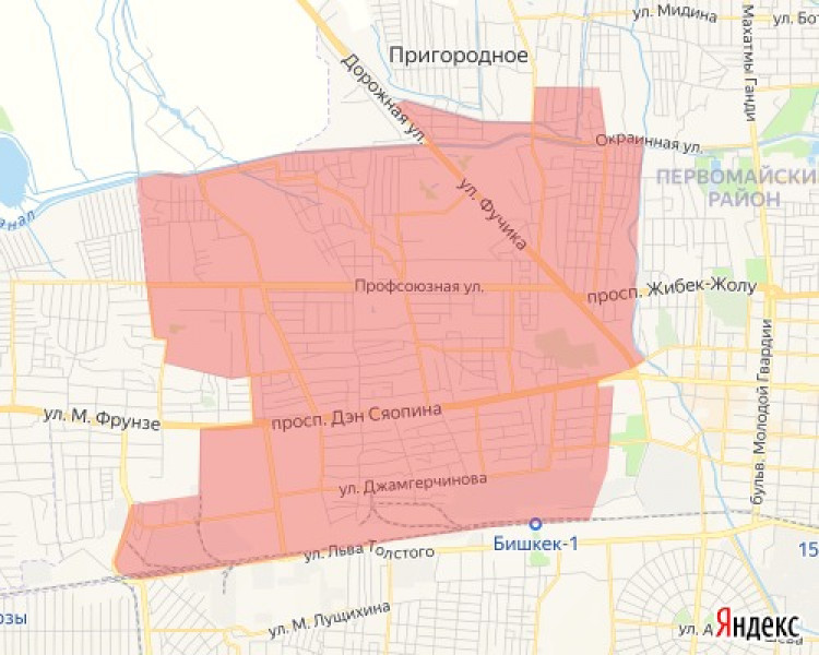 •ул. Алыкулова – ул. Кустанайская - БЧК – р.Ала-Арча - ул. Рыскулова (пр.Д. Сяопина) – интергельпо – Линия железной дороги.