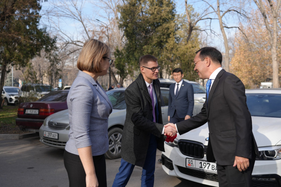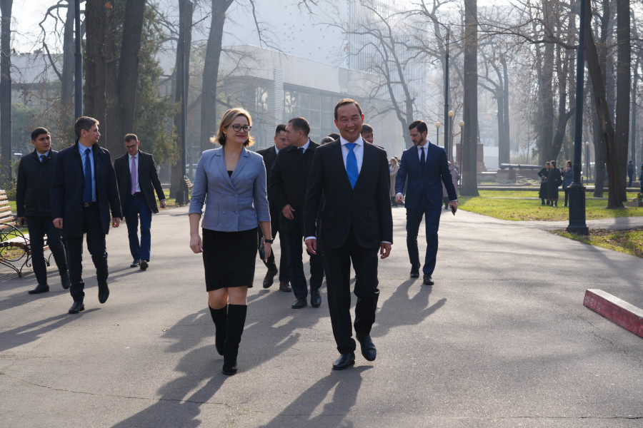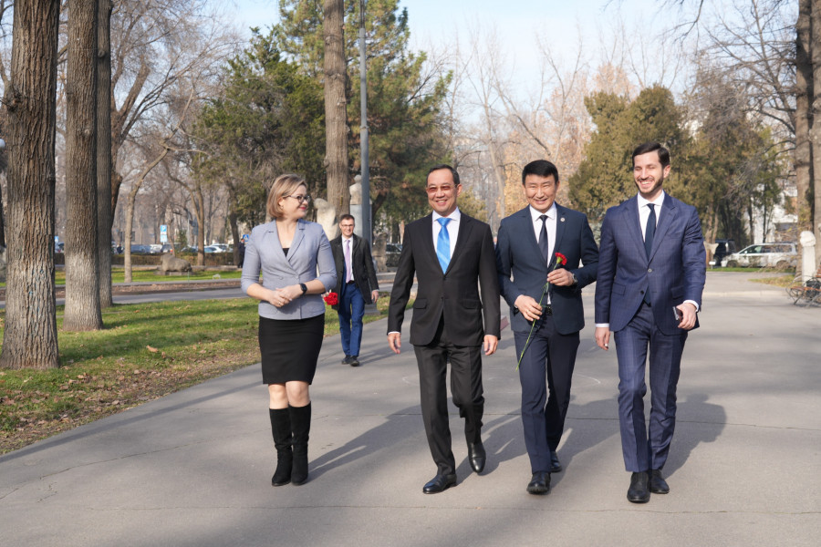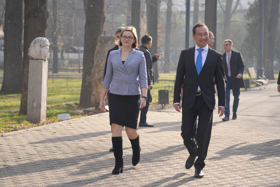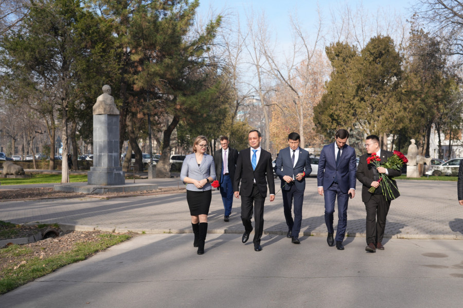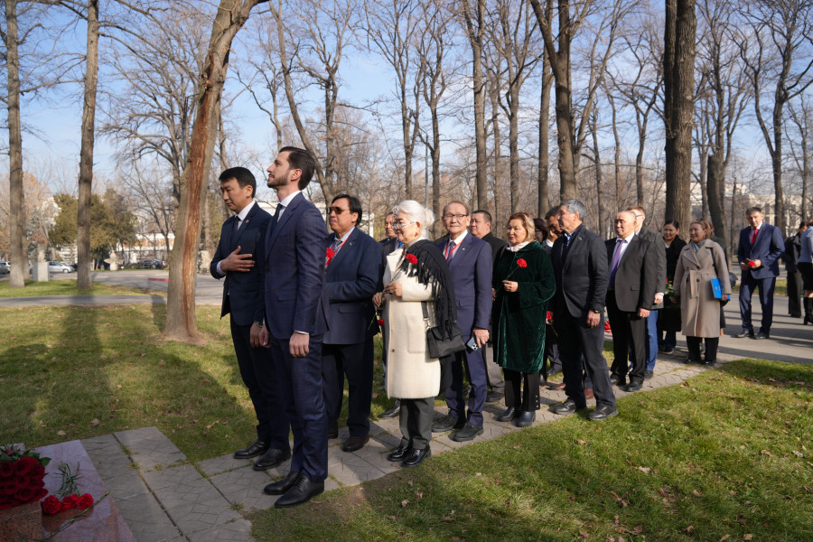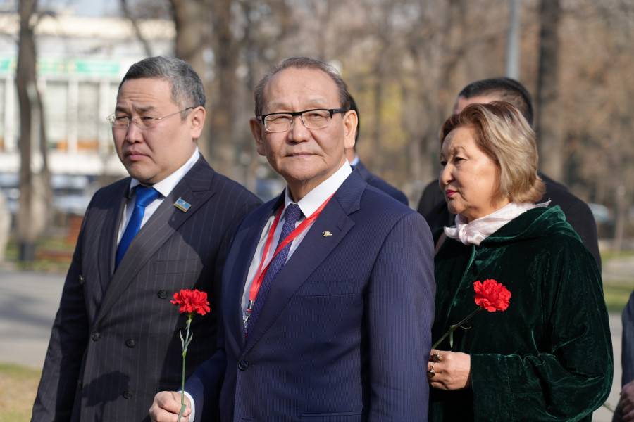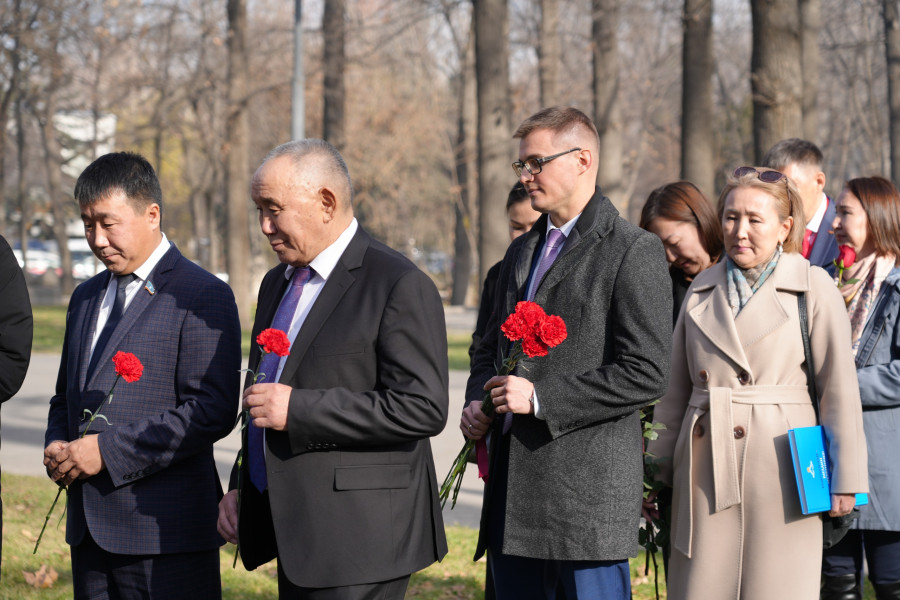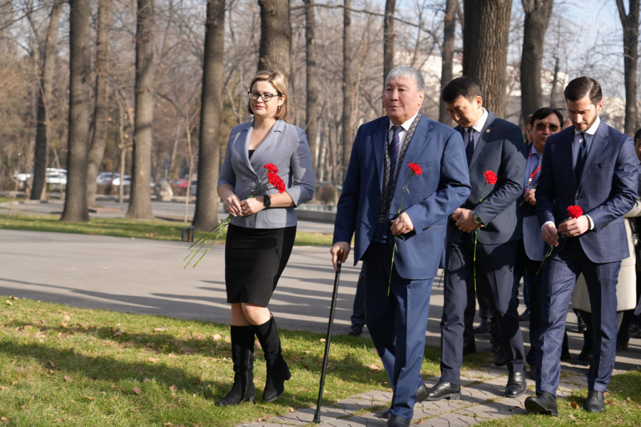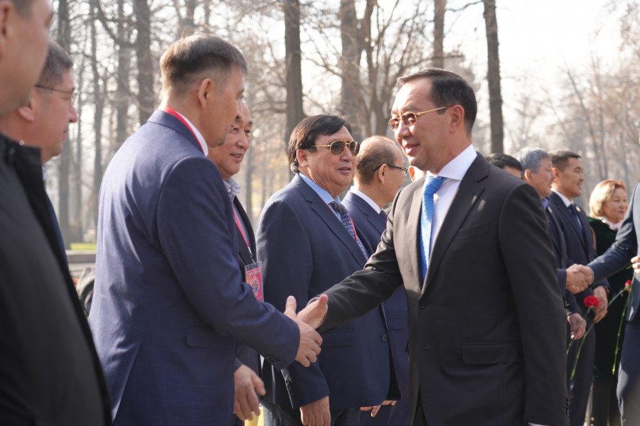 В рамках рабочего визита главы Республики Саха (Якутия) Айсена Николаева в городе Бишкек состоялась церемония возложения цветов к бюсту Максима Аммосова.