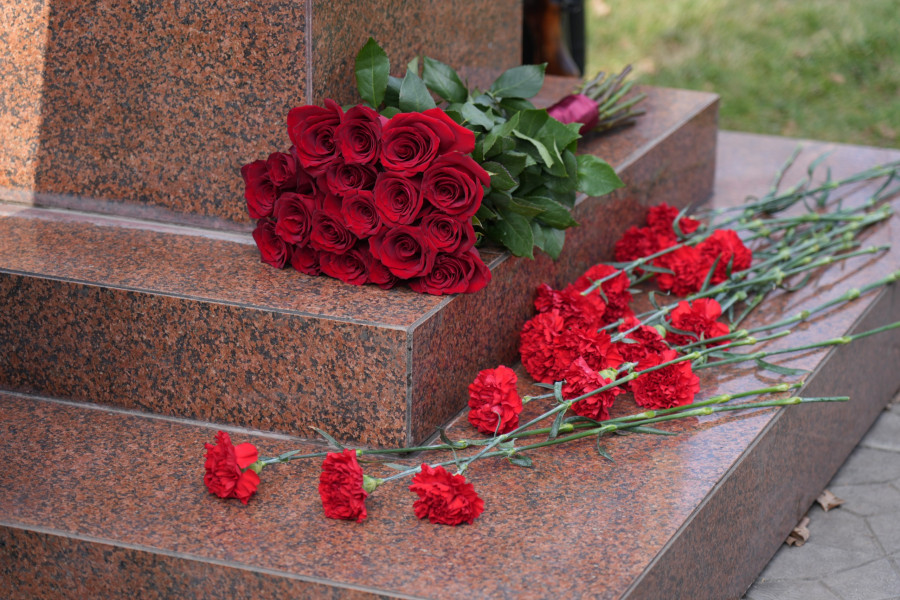 Гости мероприятия склонили головы и возложили цветы к памятнику.